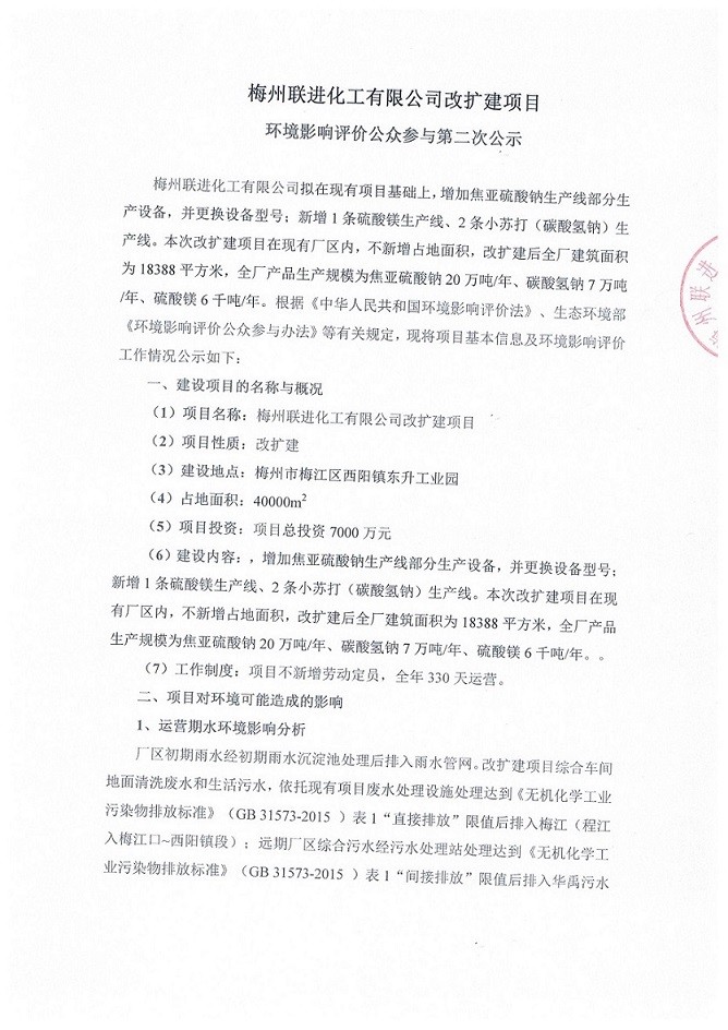 梅州聯(lián)進(jìn)化工有限公司改擴(kuò)建項(xiàng)目環(huán)境影響評價(jià)公眾參與第二次公示