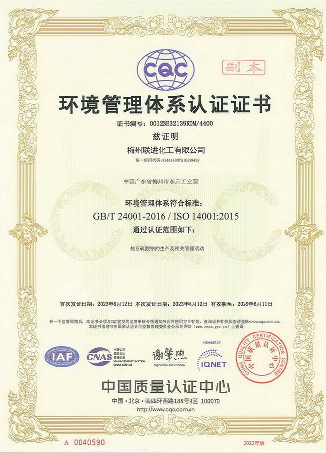 ISO14001體系證書—
